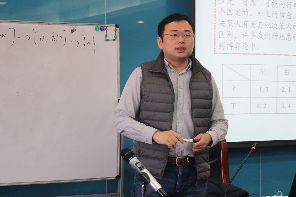 魏旭副教授对高级微观经济理论进行了介绍。魏老师首先介绍了消费者理论、生产者理论和一般均衡理论,以当前社会的经济现象为例,如地价和房价的关系、廉租房的卫生间问题、以药养医等,让同学们更好的理解微观经济学的供求均衡思想。之后,魏老师重点讨论了博弈论和信息经济学,详细展示了各类博弈中纳什均衡的求解,让同学们学习使用博弈论的思维分析一些经济现象和社会现象。魏老师在课程教授中将生动的故事案例与理论模型相结合,寓教于乐,师生积极互动。