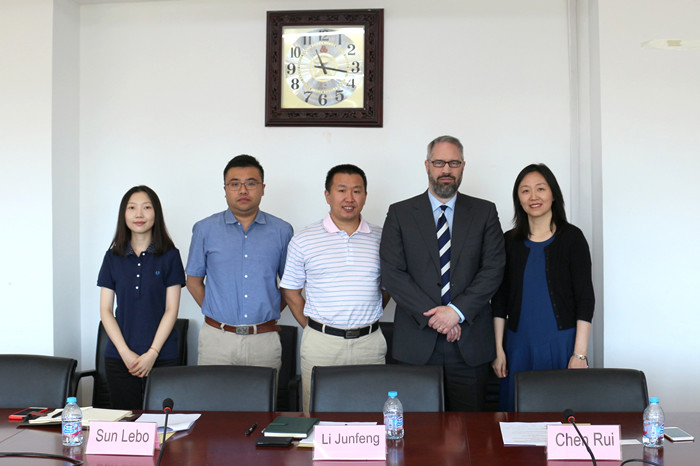 9月20日上午10:30-11:30,公司经理助理李俊峰副教授、经理助理陈锐助理教授和项目主管孙乐博老师在913会议室会见了澳大利亚阿德莱德大学法公司兼国际事务副经理Paul Babie教授和澳大利亚国际教育服务中心执行董事金喆女士。李俊峰副教授首先介绍了公司的基本情况及公司国际项目的办学历史、特色和优势。随后Paul Babie教授介绍了阿德莱德大学的基本情况和科研实力,并表达了愿与公司进行多层次合作的兴趣和意向。双方就开展国际本科项目的合作及两校教师互访等事宜进行了深入的交流,达成了高度的共识。