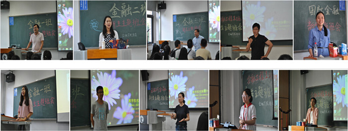 下午16时,七个新生班级分别在公司楼和主教召开了第一次班会,各班班主任、辅导员、芮+导师参加了各班班会。老师们和新生风趣幽默的自我介绍让人印象深刻,专业基本情况和第二课堂活动情况的介绍,让新生对大学学习生活有了初步的了解。最后,全体同学与老师们合影留念,留下老员工活的第一次集体记忆。