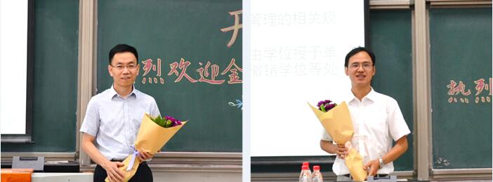 研究生在校生代表何山同学与大家交流了自己研究生阶段的学习感悟。他认为作为一名研究生,一是应该学会思考,从本科时期知识的接收者转变为知识的创造者;二是应该脚踏实地,严谨地对待自己的学术科研任务;三是要认真规划时间,处理好学习、考证和实习之间的时间安排。最后他还为大家介绍了学术研究的基本步骤,让新生们对学术科研过程有了初步了解。2017级新生代表潘柯晔同学分享了自己的感悟。他说,公司就像是一个温馨团结的家,爱护和关怀着每位同学的成长。针对研究生阶段的学习,他认为更高的平台意味着更高水平的竞争,意味着对自己更高水平的要求,因此要尽快静下心来,潜心学习。