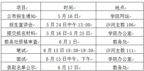 四、金融学实验班招生工作时间安排
