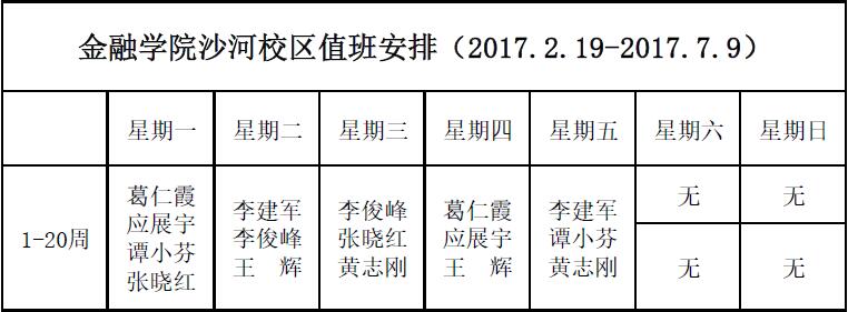 365英国上市公司沙河校区值班安排(2017.2.19-2017.7.9)
