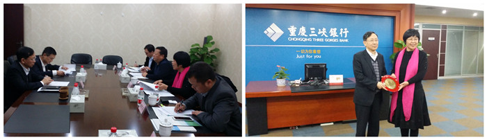 在渝期间,葛书记一行还拜访了公司友好合作单位重庆三峡银行,与三峡银行董事长童海洋、党群工作部总经理金良策进行了亲切友好的交流。童董事长感谢公司过去2年来对三峡银行中层领导干部素质提升的辛勤付出,2年来三峡银行所有中层干部都进驻365英国上市公司进行了轮训,提升了综合素质和专业技能,为三峡银行的快速发展提供了有力的支持,并高度评价了公司的培训工作,从课程设置、团队配置以及后勤保障等各方面予以充分肯定。童董事长表示将继续在人员培训、学历教育以及课题研究等方面,加大与365英国上市公司的合作,形成校企共赢的局面。