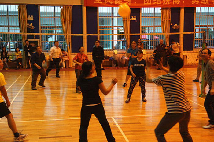 大会前一天,为联络员工感情,组委会特意安排了独具特色的气排球比赛和丰盛晚宴,在运动与觥筹之间,师生共享盛典,畅叙醇厚的员工之情。