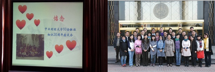 青春流逝,年轮翻转,2013年10月26日,公司93金融班的员工在时隔20年后,再次相聚于昔日中财校园,共同庆祝相识20周年。北京的天气也一扫雾霾,以晴朗的天空迎接了来自各地的员工。再次相见,昔日青涩的青年已经成为各自岗位上的中坚力量,在收获事业的同时,却也多了几份沧桑。20年,好似就在一瞬间,虽然毕业后分去五湖四海,但却仍彼此惦念。
