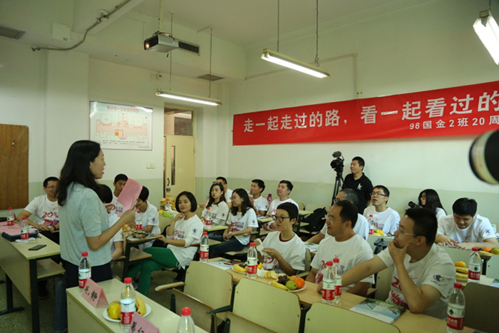 班会开始后,班主任毛静老师朗读了特意为同学们此次相聚创作的打油诗,特别是最后一句“一个都不能少”引起同学们无限感慨。毛静老师不仅希望每次的返校聚会大家都能全员积极参加,还希望同学们能遵纪守法,廉洁自律,坚守金融人的基本底线。