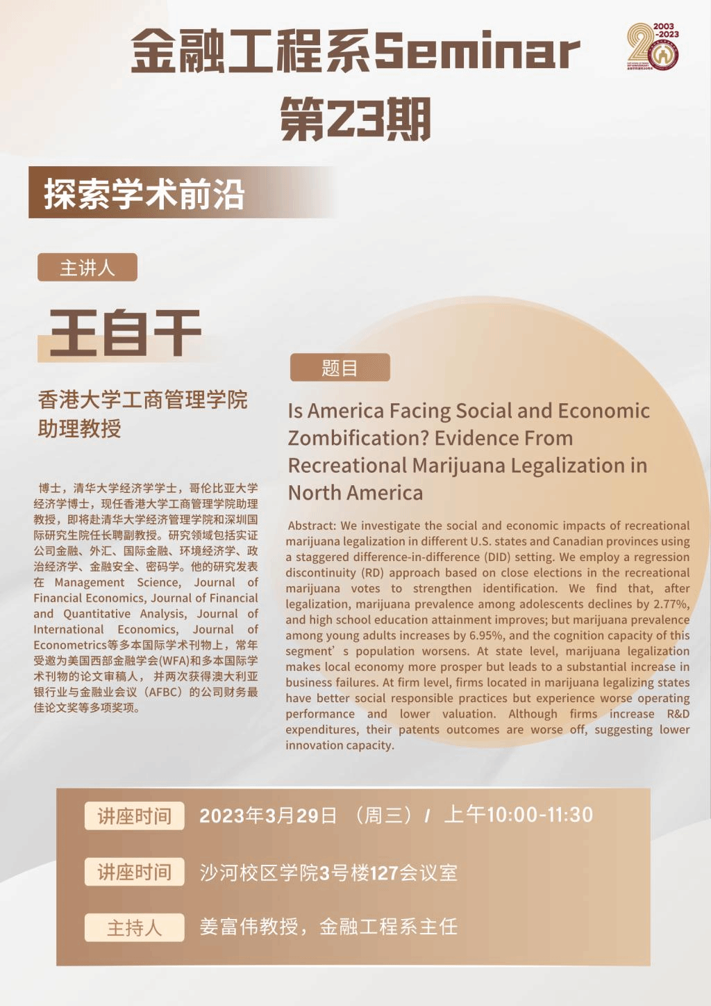王自干 | 金融工程系Seminar第23期