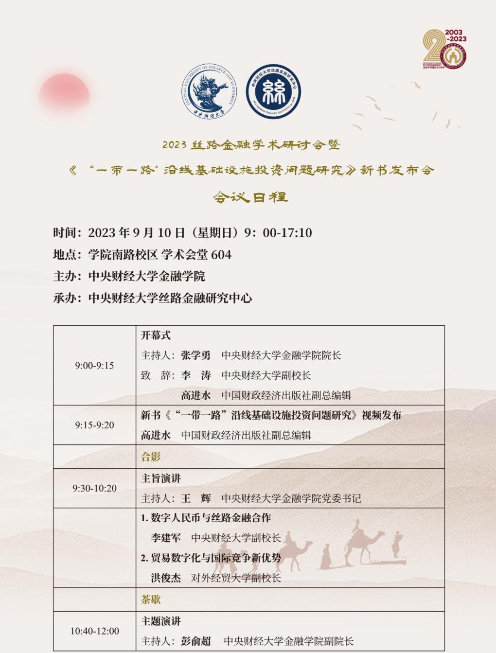 2023 丝路金融学术研讨会暨《“一带一路”沿线基础设施投资问题研究》新书发布会会议日程
