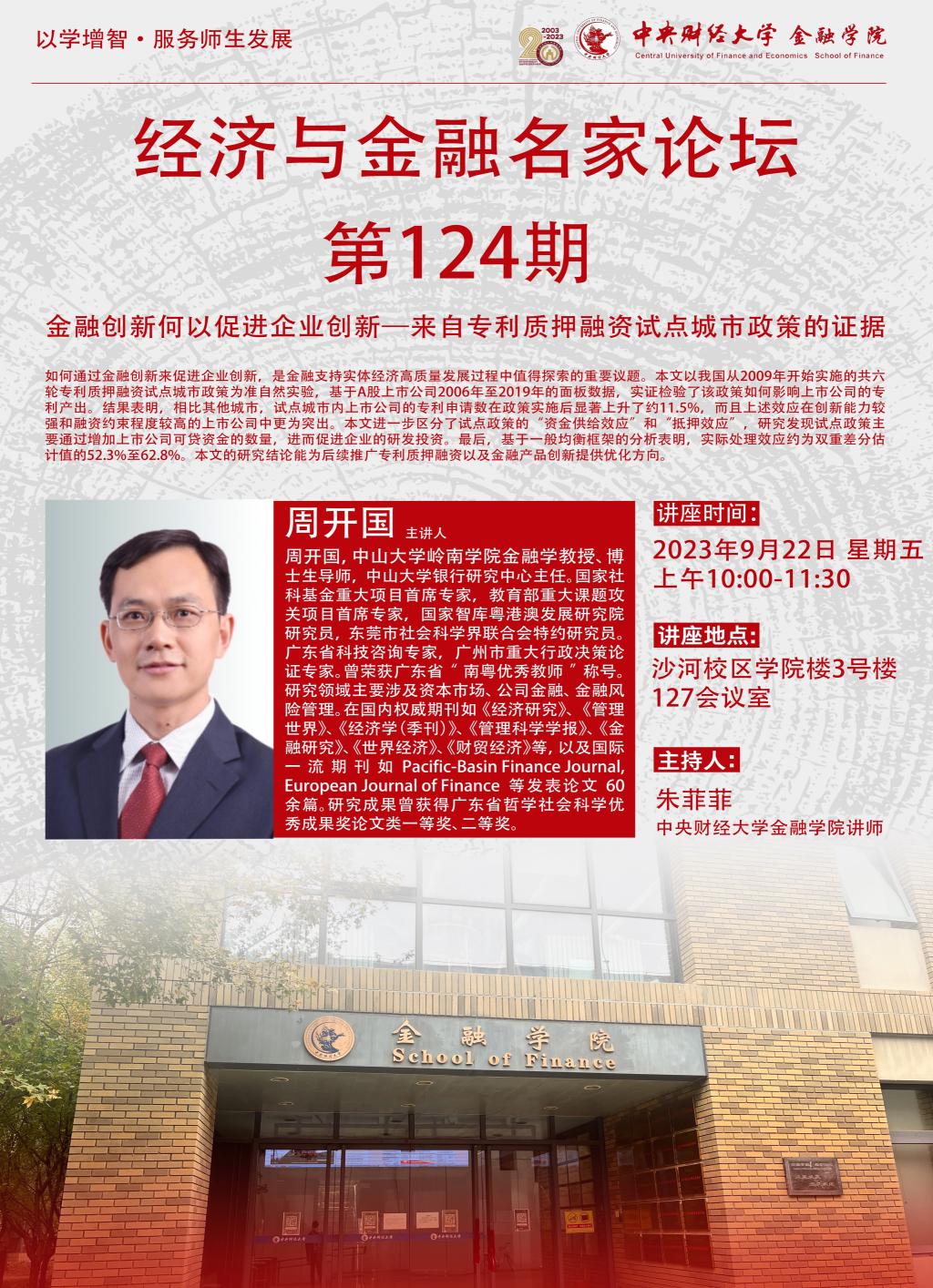 周开国 | 经济与金融名家论坛第124期