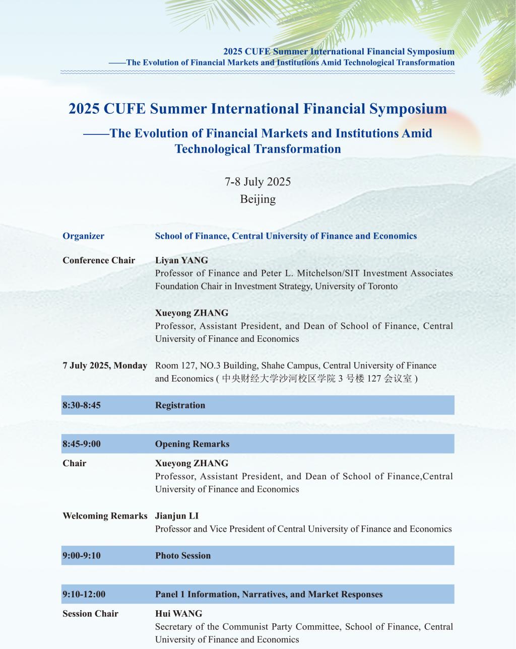 2025年中财大夏季金融国际研讨会——技术变革下的金融市场与金融机构演化