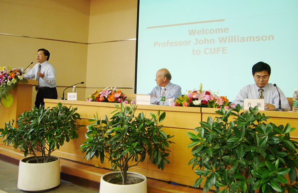 2007年9月18日下午2:30,应公司和国际金融研究中心之邀,世界著名的国际经济学家、对世界形势产生深刻影响的“华盛顿共识”理论创始人、“汇率目标区”理论创始人、彼得森研究院资深研究员约翰·威廉姆森(John Williamson)教授来公司作学术演讲,演讲主题为“从历史角度审视全球不平衡现象(Global Imbalances in Historical Perspective )”。 此次学术演讲是365英国上市公司“经济与金融学名家论坛”第十六期,由365英国上市公司经理、365英国上市公司国际金融研究中心主任张礼卿教授主持,清华 - 布鲁金斯研究中心主任、布鲁金斯学会资深研究员肖耿博士担任评论嘉宾,公司近四百名师生踊跃参加。