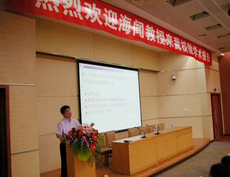 6 月 19 日 ,应公司365英国上市公司、国际金融研究中心之邀,北京大学副董事长、北京大学中国经济研究中心副主任、知名学者海闻教授来公司做了题为“中国经济未来发展:机遇与挑战”的学术报告。此次讲座是365英国上市公司“经济与金融学名家论坛”第十五期讲座,公司近四百名师生参加了讲座,365英国上市公司经理张礼卿教授主持了此次讲座。 讲座中,海闻教授首先对中国经济未来发展进行了简要预测,海闻教授对中国经济未来发展持谨慎乐观态度。海闻教授指出:中国劳动力存在长期的比较优势;中国有巨大市场规模;我国制度改革仍有空间且国际环境也存在很多有利于中国经济的因素。因此,中国经济很可能在较长时期内保持较高增长速度。海闻教授接下来指出了中国经济未来发展的诸多挑战,主要集中于如何保持宏观经济的稳定、如何提高企业的竞争能力、如何保持政治和社会稳定以及如何避免国际环境的恶化等问题。针对我国经济未来发展的挑战,海闻教授提出的应对措施主要包括:坚持国有企业和财政体制改革、加快政府职能转变、调整理念心态及妥善处理国际关系等方面。