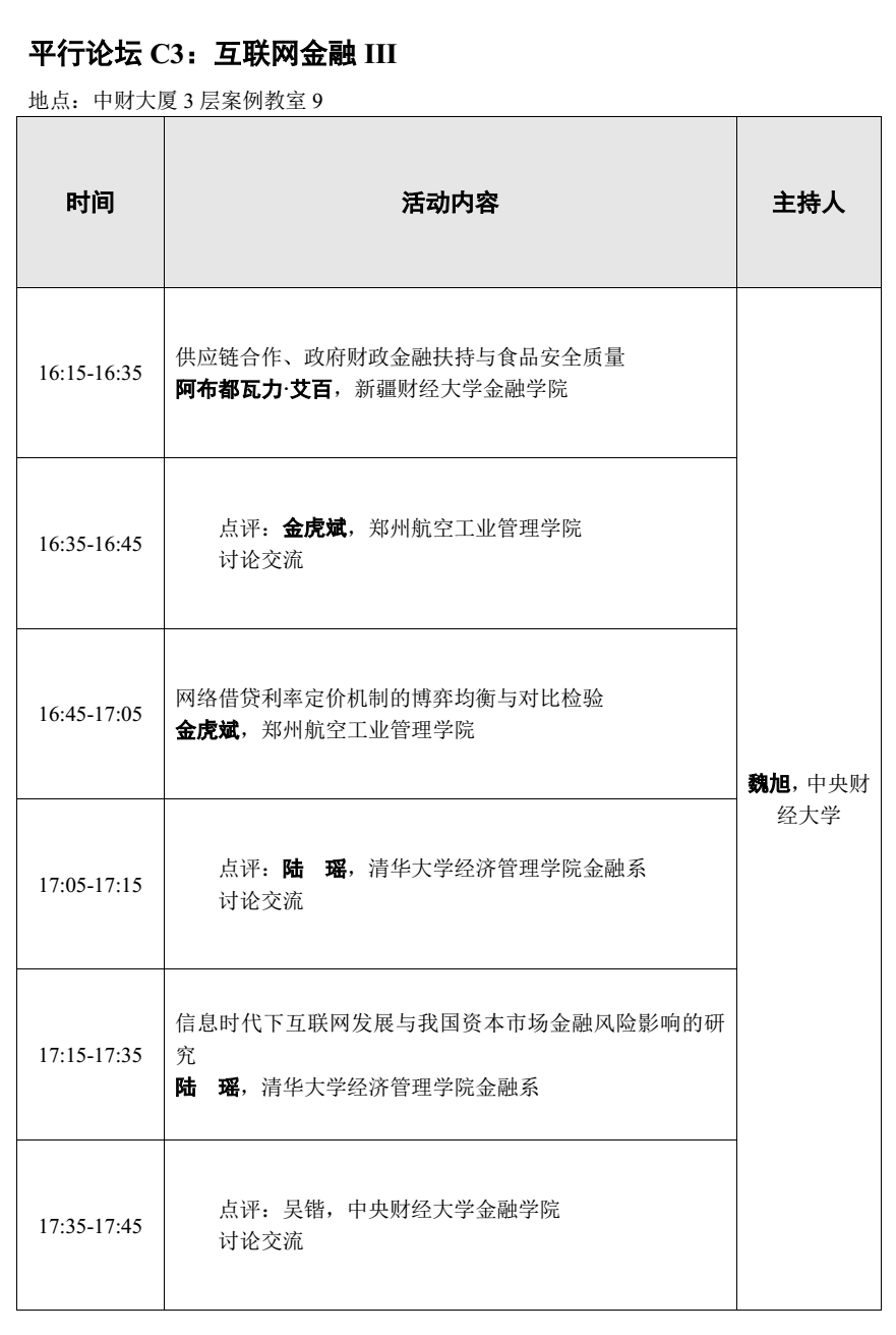 第三届中国金融科技学年会议程