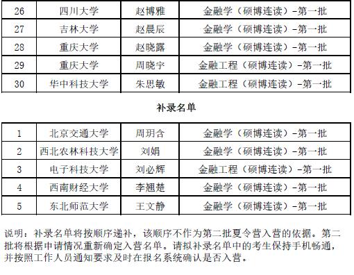 第六届“全国卓越金融学子夏令营(硕博第一批)”拟入营名单