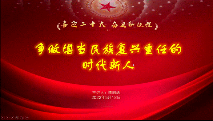 首先,博士生第二党支部副书记李明琢同志围绕“争做堪当民族复兴重任的时代新人”这个主题展开学习,他归纳总结了四个主要内容:立志民族复兴,不负韶华;坚定不移听党话、跟党走;坚定信仰、模范践行;用脚步丈量祖国大地。李明琢同志认为,我们青年人应该做到青春向党,不负人民,在奋斗中释放青春激情,追逐青春理想,以实际行动来迎接党的二十大胜利召开,让青春之花在不懈的奋斗中绚丽绽放。
