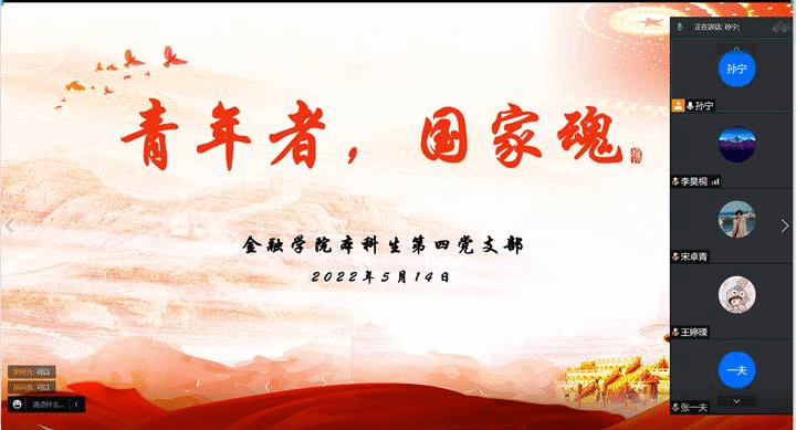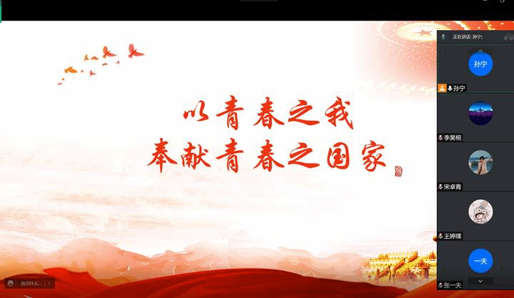 5月15日晚20点,365英国上市公司本科生第四党支部在研究生党员孙宁的带领下,通过腾讯视频举行了线上会议,会议内容主要分为三个部分:1、学习习近平总书记在视察人民大学时的重要讲话;2、学习共青团百年征程;3、学习习近平总书记在庆祝共青团成立一百周年的重要讲话。