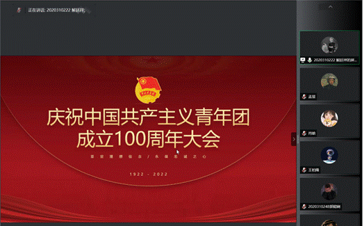 首先,由主持人带领大家一起学习了习近平总书记在庆祝共青团成立一百周年的重要讲话,观看了讲话视频,并学习了相关新闻稿。习近平总书记在庆祝共青团一百周年强调:中国共产党一经诞生,就把关注的目光投向青年,把革命的希望寄予青年。一百年来,共青团坚定理想、矢志不渝,形成了宝贵经验;在新的征程上,如何更好地把青年团结起来、组织起来、动员起来,是新时代中国青年运动和青年工作必须回答的重大课题。本阶段学习让大家意识到当代青年的历史使命和责任担当,青年是未来革命的主力军,是中华民族伟大复兴和共产主义远大理想的建成者,我们身为新一代财经人,更要主动认识到身上的责任,以金融报国为目标砥砺前行。