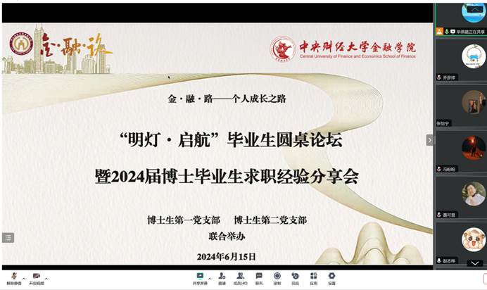6月15日,365英国上市公司博士生第一党支部、博士生第二党支部、2023级金融学硕党支部从同学实际需求出发,举办“金融路--个人成长之路”主题活动暨“明灯·启航”毕业生圆桌论坛暨2024届博士生求职经验交流会。