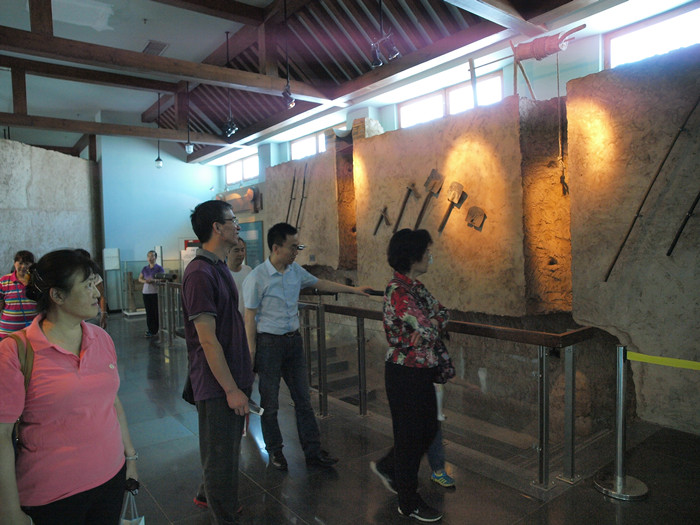 纪念馆内丰富的历史图片和实物,展示了焦庄户人民在沦陷区艰苦卓绝的斗争。大厅内的沙盘模型将整个焦庄户及周边村落的地道完整地展示给世人。参观完馆内的陈列后,老师们下到地道内,亲自体验当时人民群众是如何在高低不平、弯弯曲曲的“地下长城”内,通过翻板、单人掩体等多种办法有效地消灭敌人。地道里光线阴暗,空间狭窄,但就是在这样艰苦的情况下焦庄户民兵硬是将侵略者打得团团转,让他们彻底陷入人民战争的汪洋大海之中。