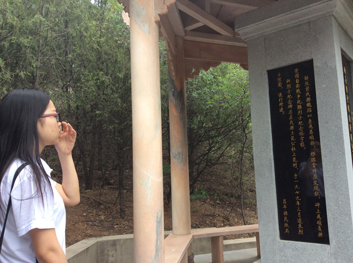 经过50分钟的车程,支部成员抵达了位于昌平区凤凰岭山区中的昌平烈士陵园。党员们首先参观了烈士墓地,在烈士墓前默哀一分钟,用这种方式表达了对先烈的崇敬和哀思。之后同学们参观了昌平烈士纪念碑,看着镌刻着烈士名录的碑文,同学们不禁肃然起敬,正是由于革命前辈们的牺牲,我们才有了今天的幸福生活。最后,支部同学参观昌平革命历史纪念馆,纪念馆李陈列了不同时期革命烈士的名单、照片、事迹以及生前遗物,党员们认真观看了视频介绍,对当时的战争情况有了深入的了解,再次为革命先烈的英雄事迹深深感动。