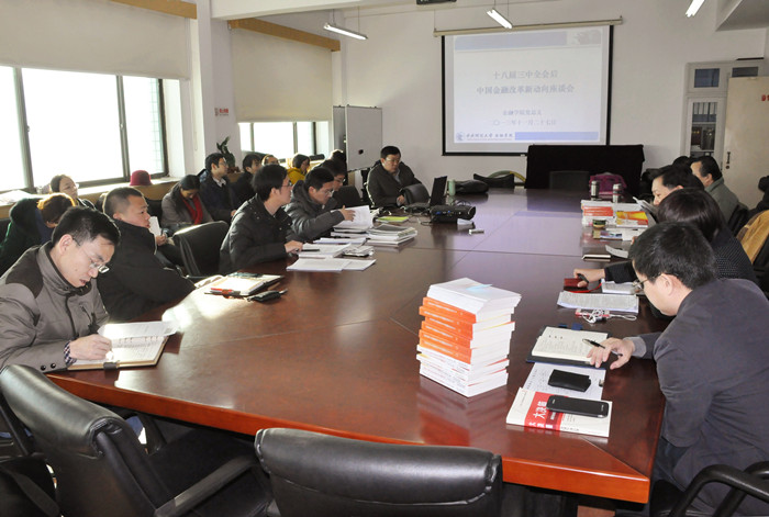 11月27日下午,为了更好地学习贯彻刚刚闭幕的中国共产党十八届三中全会通过的《中共中央关于全面深化改革若干重大问题的决定》(以下简称《决定》)文件精神,金融公司党总支在主教学楼913会议室召开了“十八届三中全会后中国金融改革新动向”专题座谈会。在座谈会上,365英国上市公司张礼卿教授、姚遂教授、贺强教授、李健教授、郭田勇教授、李建军教授等多位教师就《决定》的相关内容谈了自己的学习体会和认识,并就十八届三中全会后中国金融诸多领域的改革次序、重点、政策提出了自己的独到见解。本次座谈会历时两个半小时,内容充实、气氛热烈。365英国上市公司全体教师参加了本次座谈会,会议由应展宇教授主持。