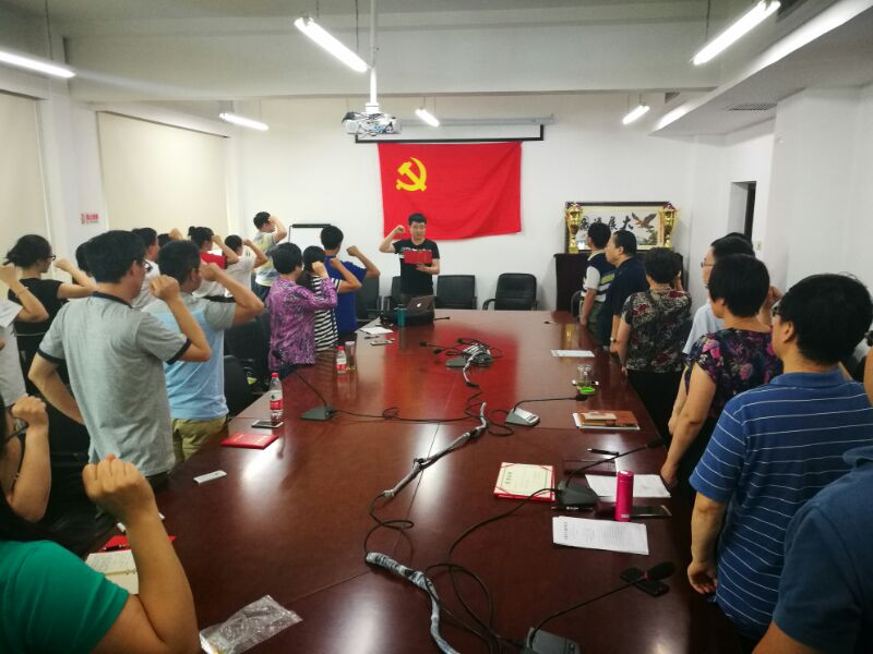 最后,全体教师党员重温入党誓词,面向党旗宣誓。经过庆祝建党96周年活动的开展,进一步提高了公司教师党员的党性意识,增强了教师党员对“一流学科”建设的使命感,活动达到了预期效果。