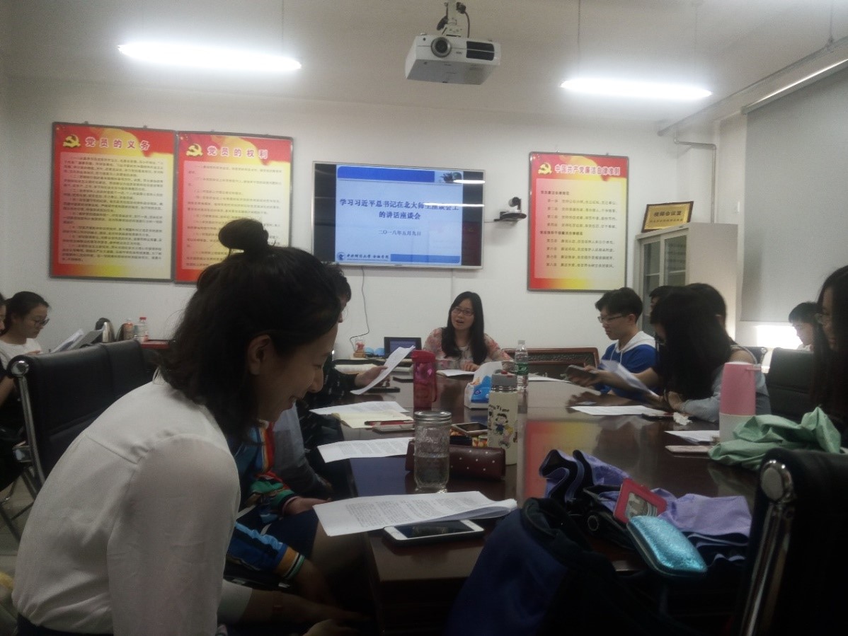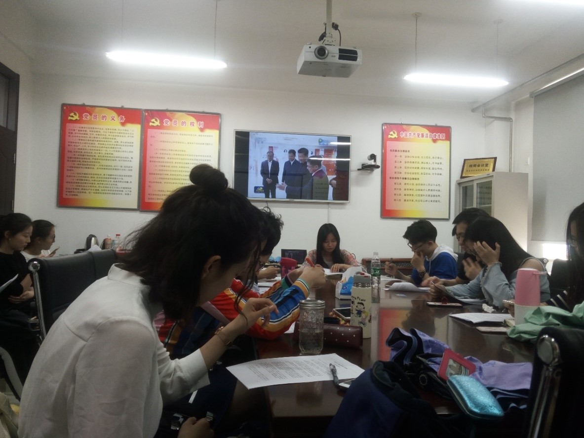 在党支部书记梅琪老师的组织下,支部成员首先观看了在“五四”青年节和北京大学建校120周年校庆日即将来临之际,习近平总书记到北京大学考察并在师生座谈会发表重要讲话的视频资料,同时进行讲话原文的学习。习近平总书记指出,青年是国家的希望、民族的未来,衷心希望每一个青年都成为社会主义建设者和接班人,成为实现中华民族伟大复兴的生力军,深刻阐明了当代青年的前进方向。“当代青年要忠于祖国、忠于人民,要立鸿鹄志、做奋斗者,要求真学问、练真本领,要知行合一、做实干家,深刻阐释了当代青年的成长路径。”总书记的重要讲话为当代青年健康成长、新时代青年工作指明了方向,提供了遵循。