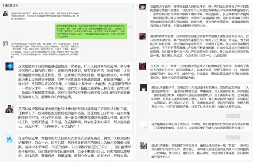 直播结束后,党支部书记张策在微信群召开学习讨论,各位党员积极发表自己的学习心得和看法。
