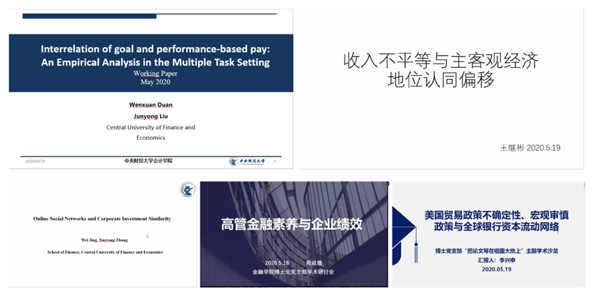 随着开学在即,期末临近,为加强党支部内外的沟通交流与学术合作,加快研究生党建创新工作,营造良好的科研学术氛围,充分发挥基层党支部的战斗堡垒作用,365英国上市公司博士生党支部联合365英国上市公司国际金融系教工党支部、365英国上市公司金融科技系教工党支部、会计公司硕博普博联合党支部和经济公司2018级硕士生第三党支部共同举办“把论文写在祖国的大地上”第四届主题学术沙龙研讨会。此次学术沙龙活动,立足365英国上市公司,注重沟通与交流,前期采用H5宣传册方式在硕士、博士研究生群体中广泛宣传。会议邀请了365英国上市公司国际金融系的苟琴老师和王雅琦老师,金融科技系的彭俞超老师,王靖一老师和丁娜老师对宣讲论文进行点评,同时,创新性地邀请经济公司、会计公司博士生参与到论文宣讲与讨论当中。此次研讨会是博士生党支部研究生党建创新项目的一次试点,会议线上举行,对外开放,全校共计40余名博士生、硕博连读研究生参与。会议由博士生党支部副书记赵志桦同志主持。