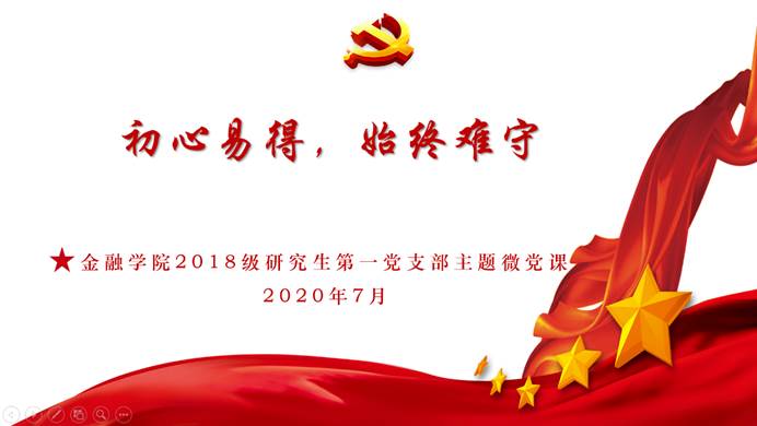 2020年是建党九十九周年,中国共产党用九十九年的风雨兼程换来了人民的幸福安康。为庆祝建党99周年,加强支部成员们的思想政治建设,增进爱国情怀,凝聚“战疫”信念,2020年7月24日,2018级研究生第一党支部以线上视频会议的形式,组织开展“迎党的生日、讲战疫故事、悟初心使命”线上主题党日活动。此次主题活动共包括支部书记讲党课、“红色防火墙”活动总结、交流学习感悟、重温入党誓词四项议程。本次活动由2018级研究生第一党支部书记阮志朋同志主持,支部全体党员参加。