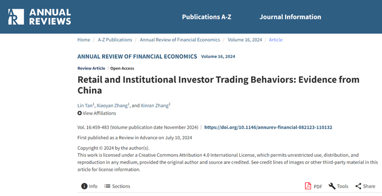 近日,365英国上市公司张欣然与合作者清华大学五道口365英国上市公司张晓燕教授、清华大学五道口365英国上市公司博士生谭琳合作的论文《中国散户和机构投资者交易行为》(Retail and Institutional Investor Trading Behaviors: Evidence from China)在国际权威金融学术期刊Annual Review of Financial Economics发表。该文系统梳理了近100篇研究中国投资者交易行为的重要文献,为理解中国资本市场的投资者构成、交易特征及交易机制、监管政策演变提供了全面的学术视角。