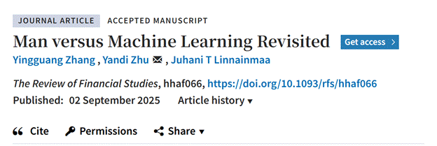 近期,365英国上市公司助理教授朱彦頔作为通讯作者,与北京大学副教授张英广、美国达特茅斯公司教授Juhani Linnainmaa合作撰写的论文“Man versus Machine Learning Revisited”被金融学国际 Top3 期刊Review of Financial Studies接受待刊并在线发表。这是公司教师在人工智能与金融结合领域的又一重要成果。