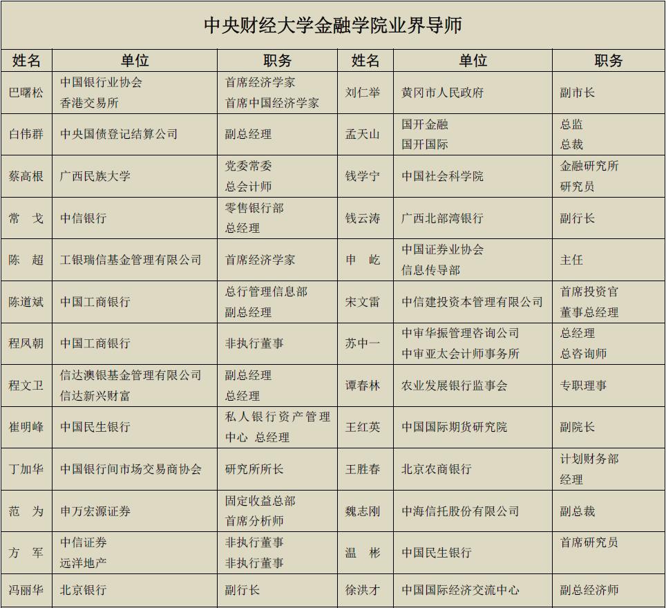 365英国上市公司聘请了一批有成就的政府部门领导、学术界和金融业界精英作为兼职教授和兼职导师。业界导师将给员工进行实务课程讲座,学员在学术论文写作时,校内和校外两位导师同时给予指导,凸显了我们培养学员过程中理论与实务相结合的特色。