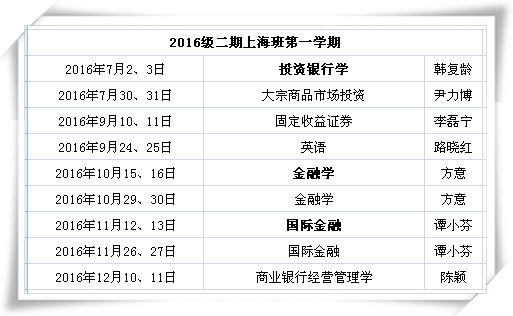 上海班2016学年秋季学期总课表