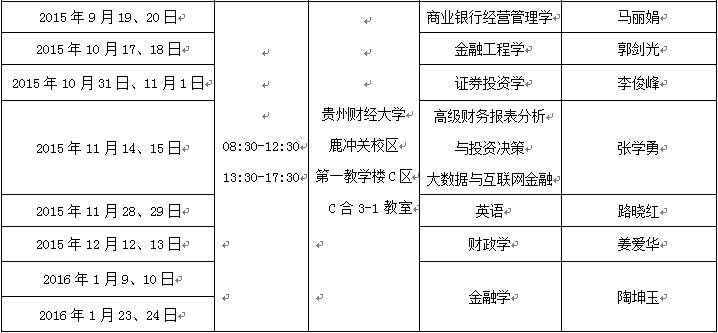 贵阳班2014级第三学期课程安排