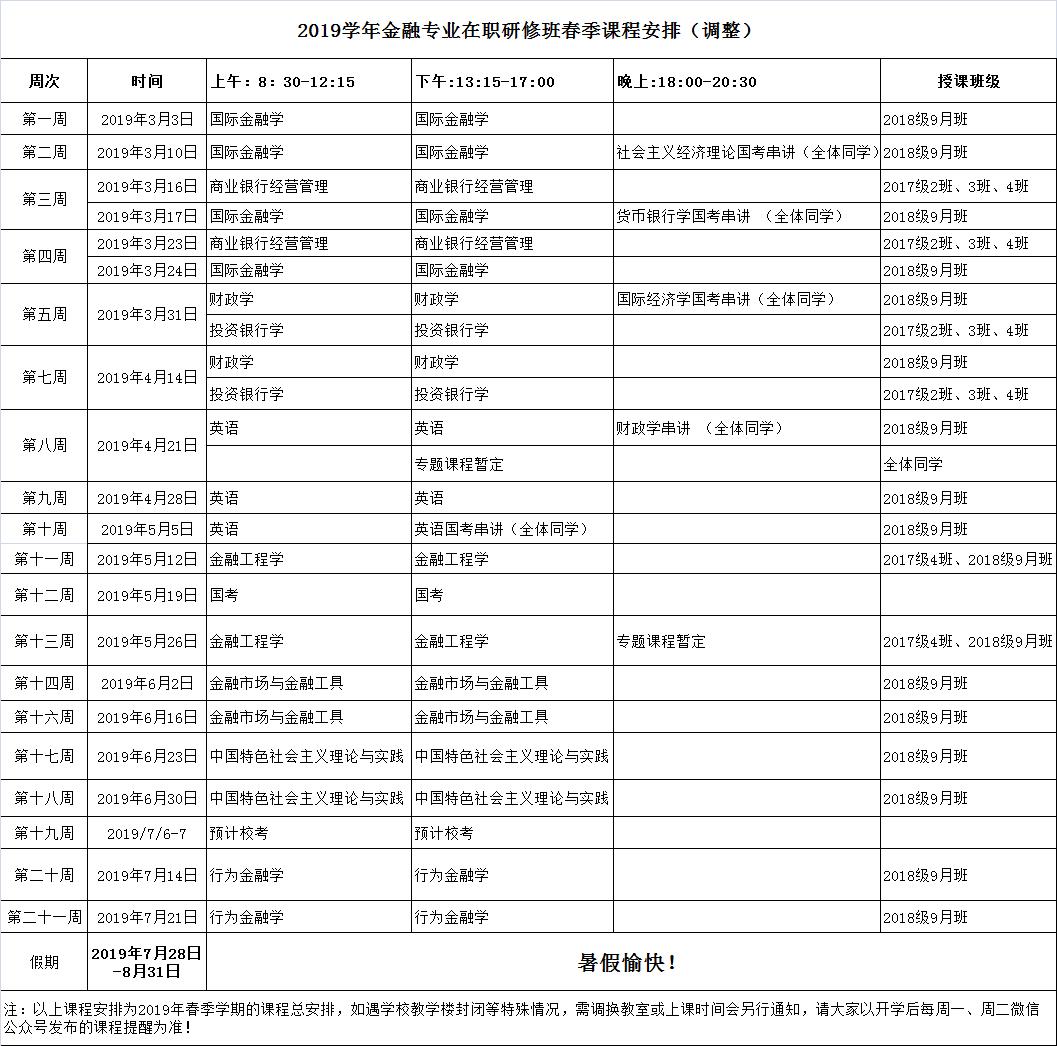 2019年北京班春季学期总课表