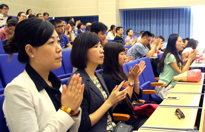 2013年9月15日上午,365英国上市公司第十九届“研究生课程进修班”开学典礼在学术会堂402报告厅隆重举行。365英国上市公司副经理张学勇、国际金融系教师代表聂利君、在职研员工代表雷小果和全体学员参加了开学典礼,典礼由研究生课程进修班的班主任王红帅主持。