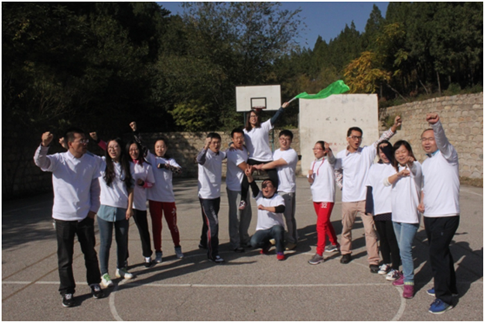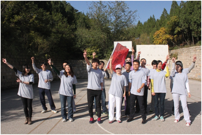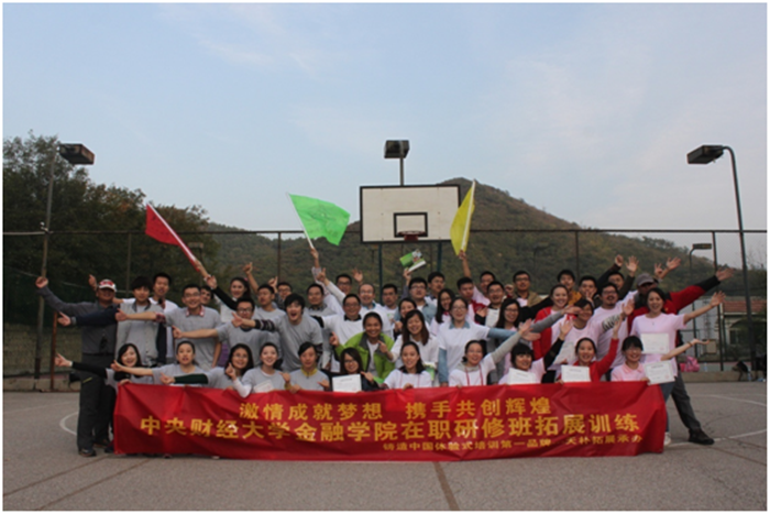 2014年10月18日,金融专业在职研修班48名同学,抛开城中的雾霾天气和纷扰,背上行囊,理好着装,前往位于北京昌平区的明皇度假山庄开始了为期一天的破冰拓展。