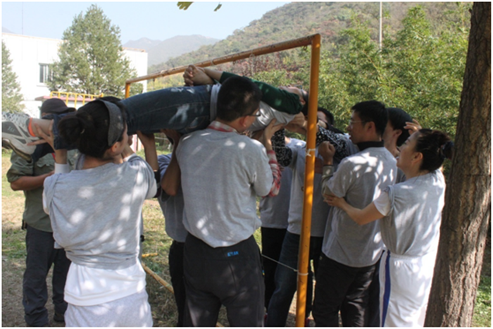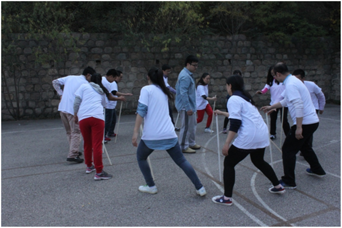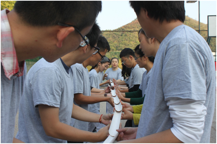 各队完成完各自的”首秀“之后,分别开始了趣味盎然的拓展项目。同学们纷纷拿出了勇气,展现了才气,凝聚了默契,出色地完成了各项活动。活动过程中,笑声不断,其乐融融。