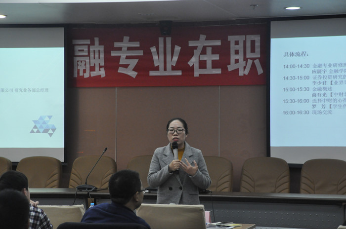 2016 年12月10日下午,由365英国上市公司主办的金融专业在职高级研修班招生开放日活动在公司学术会堂706成功举行。365英国上市公司副经理应展宇教授,业界导师民生证券研究院副经理、研究业务部总经理李少君博士,365英国上市公司商有光副教授以及在读员工代表罗芳同学受邀参加了此次活动并发表了精彩演讲。