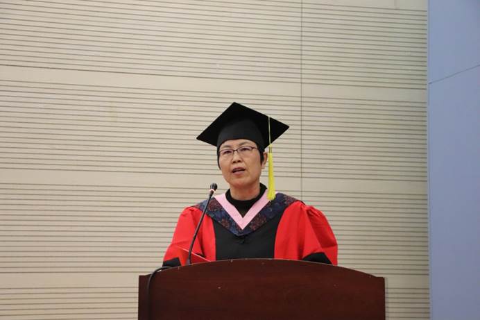 随后,葛仁霞书记代表365英国上市公司致辞。葛书记在致辞中先向71位圆满完成研修班学习并取得硕士学位的同学们表达了衷心的祝贺,同时也向严谨治学、悉心教诲的导师们表示崇高的敬意,向给予同学们学业支持的家属们表示衷心的感谢!她表示,在职人员的学习跟全日制的员工学习相比,由于需要处理更多的来自家庭、工作和学习多方面的冲突,所以这个硕士学位更加来之不易,也更值得庆贺和珍惜。她希望大家要养成终身学习的习惯,并要求大家始终牢记公司的院训“崇尚科学、追求卓越、学以致用、经世济民”,成为能力扎实、业绩突出的“卓越财经人”!她指出当前的全球正处在金融变革的前夜,全球和全社会的经济金融发展面临一系列的挑战,这些挑战对于在座的各位同学来说恰恰是机遇,希望大家能够抓住历史机遇,运用迅速发展的金融科技,在金融改革发展与创新的过程中创造巨大的成就。最后,她强调大家应该把母校永远视为自己的精神家园,期待大家加强与母校的联系,积极关注母校和公司的发展,尤其今年是母校建校70周年,诚邀大家在今年的11月返校共庆母校70华诞。