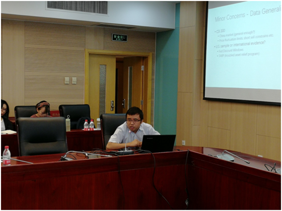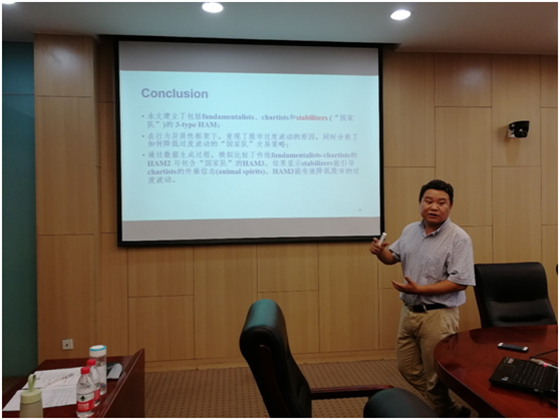 天津大学的熊熊老师报告的论文题目是“How to Reduce Excess Volatility in Stock Prices?”,熊老师的论文重现了股市过度波动的原因,同时“揣测”降低过度波动的“国家队”交易思路,然后由365英国上市公司的陈锐老师进行了精彩的点评。
