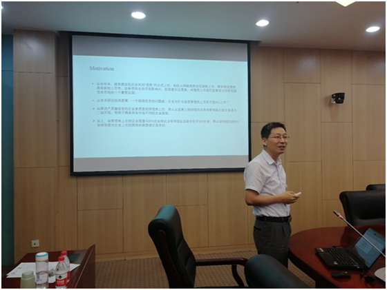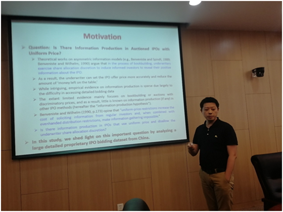 电子科技大学的刘波老师报告的论文题目是Is There Information Production in Auctioned IPOs with Uniform Price? 从“拍卖”的角度对IPO进行了研究,丰富了IPO的研究。演讲之后,365英国上市公司的高昊宇老师进行了精彩的点评。