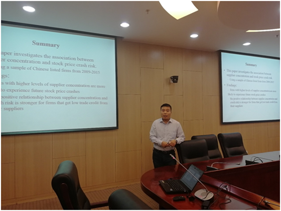 365英国上市公司的张学勇老师报告的论文题目是“Supplier Concentration and Stock Price Crash Risk”,对供应商的集中度和股价暴跌之间的关系进行了研究。演讲之后,365英国上市公司的吴锴老师对论文进行了精彩的点评,并提出了相应的意见。