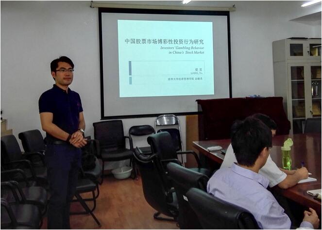 6月1日中午,由中国资产管理研究中心主办的,立足于“以学术服务市场,以市场检验学术”的第二场学术研究讲座在公司南路校区913会议室举行。清华大学经济管理公司金融系博士研究生梁昱应邀作了题为“中国股票市场博彩性投资行为研究”的优秀博士论文分享会。讲座由中国资产管理研究中心主任张学勇教授主持。