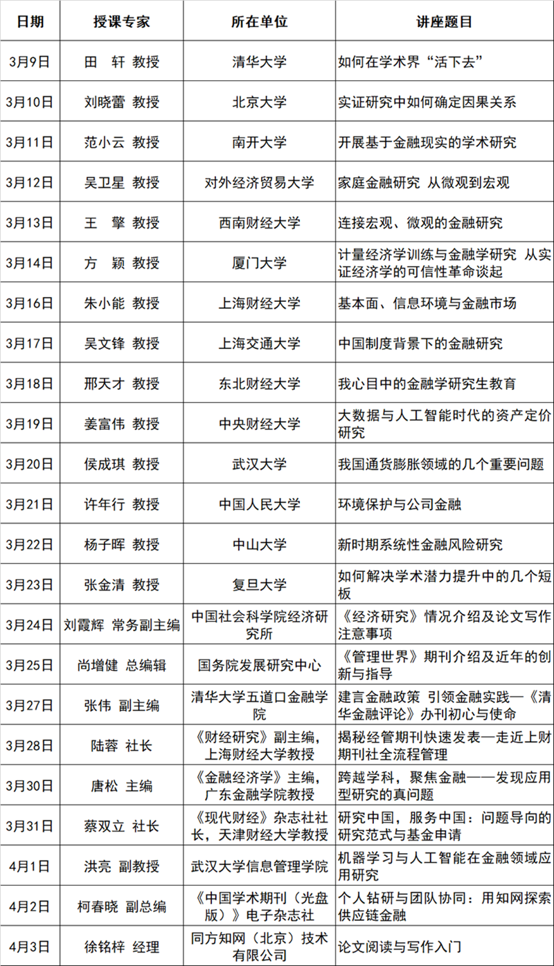 “金融学术研究能力提升大讲堂”日程安排表