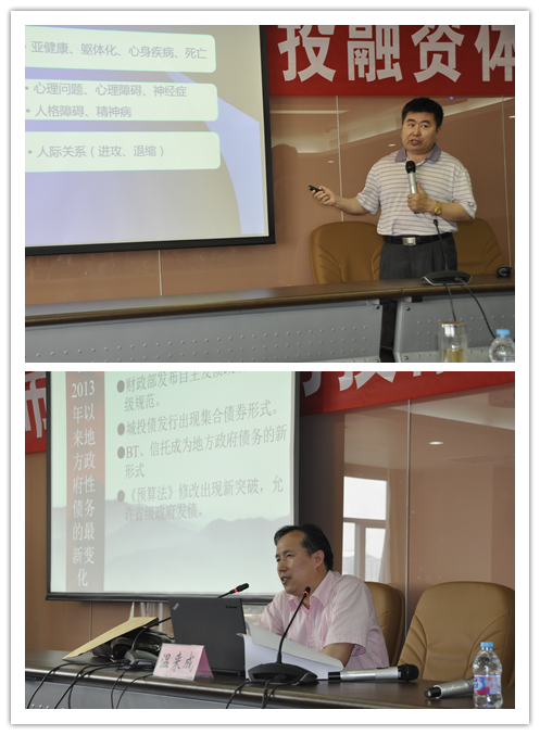 5月19日由首都师范大学田宝副教授和公司财政公司温来成教授主讲。田宝副教授作为心理学专家着重讲授了领导干部在工作中的压力管理与情绪调控,并结合学员面临的心理压力提出了正确的应对方法;温来成教授讲授了地方政府债务与投融资平台改革,通过分析多个国家的改革状况延伸到我国地方政府债务与投融资平台所面临的问题并提出了改革方向和意见。