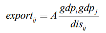 本文利用引力模型分析了中国对外直接投资的贸易效应。引力模型假设两国的贸易流量应与两国国内生产总值(GDP)正相关,并与两国地理距离负相关。基本引力模型如下: