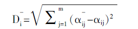 其中i=1,2,…,n,j=1,2,…, m。aij+和aij-分别表示现有评价对象在第j个指标上的最大值和最小值。