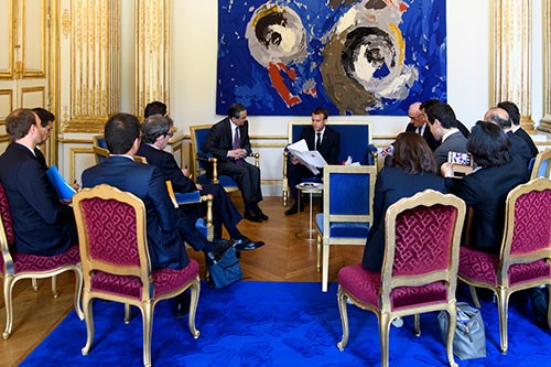 4. 2018年5月16日,法国总统马克龙在巴黎爱丽舍宫会见国务委员兼外交部长王毅。